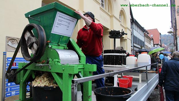 Zum Startbild (hr) Bei durchwachsenem Wetter fand vorgestern der 27. "Eberbacher Apfeltag" statt. Erst als am späten Nachmittag der Regen aufhörte, füllten sich die Straßen der Innenstadt zusehends.