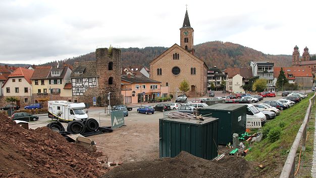 Bauamtsleiter Steffen Koch stellte für die sechs anwesenden Zuhörer die beiden vorliegenden Varianten vor. Der Gärtner-Vorschlag wirkt dabei etwas massiver und ist mit drei Vollgeschossen höher, bietet aber etwas mehr öffentliche Stellplätze (angeblich 40 bis 50) als das Dombrowski-Projekt. Letzteres zeigt kleinere Baukörper mit zwei Vollgeschossen und reichlich Grün dazwischen, beinhaltet etwa 30 Wohnungen, aber nur 25 bis maximal 35 öffentliche Parkplätze. Ursprünglich war man von mehr als 80 öffentlichen Stellplätzen ausgegangen, die bei einer Bebauung im dortigen Sanierungsgebiet "Neckarstraße I" entstehen könnten und für die die Stadt Fördermittel aus dem Sanierungsprogramm erhalten könnte. Weil inzwischen wesentliche Fristen verstrichen sind, ist es fraglich, ob selbst für die geringere Anzahl an Parkplätzen noch Fördergelder fließen werden. Für Dietrich Müller, EWG-Vorsitzender und Chef eines Modehauses in der Bahnhofstraße, sind es auch gegenüber dem ursprünglichen Ziel deutlich zu wenige Stellplätze, so dass er sogar ganz auf einen Verkauf zum jetzigen Zeitpunkt verzichten und den "Schotterplatz" lieber weiterhin zum Parken nutzen wollte.