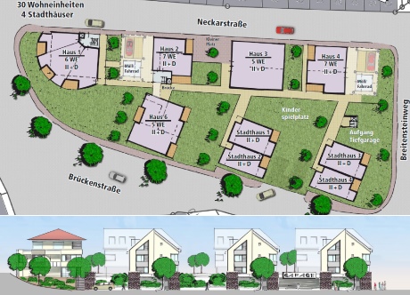 Wieslocher Gesellschaft soll an der Brückenstraße bauen So sieht der Bebauungsvorschlag aus, für den sich der Gemeinderat gestern in nichtöffentlicher Sitzung entschied. (Repro: Hubert Richter)(hr) Wie die Stadtverwaltung Eberbach heute mitteilte, hat der Gemeinderat gestern in nichtöffentlicher Sitzung beschlossen, das 2.800 Quadratmeter große Grundstück zwischen Neckarstraße und Brückenstraße an eine Baugesellschaft zu verkaufen.