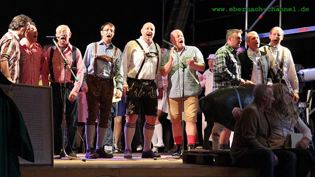 "Der Eber im Walde" ist der Titel eines Heimatfilms, der in der knapp zweistündigen kurzweiligen Show auf der Bühne im großen Saal Szene für Szene gedreht wurde. Jungregisseur Stefan Stielzwerg (Ralph Brenneis) und sein Assistent Jerome Schlappe-Kappe (Markus Scheurich) wollten mit dem Block Buster ordentlich abräumen und zogen mit ihrem Team alle Register filmischen Könnens. Hintergrund für die Story ist der Diebstahl des Bronzeebers aus der Neckaranlage im Frühjahr dieses Jahres. Die "Kuckucke" strickten darum ein Drehbuch mit viel Spannung, Action und einer Liebesgeschichte. Nachdem eine Treibjagd auf ein Hausschwein unter Mithilfe des Bürgermeisters Peter Reichert als "Oberförster" nicht den erhofften Erfolg brachte, wurden die Ganoven dann doch dingfest gemacht und der dreibeinige Eber wieder an seinen angestammten Platz zurückgebracht. Im Happy End wurde gesungen, getanzt und geklatscht und sich vor allem über den Beginn der Fastnacht gefreut.