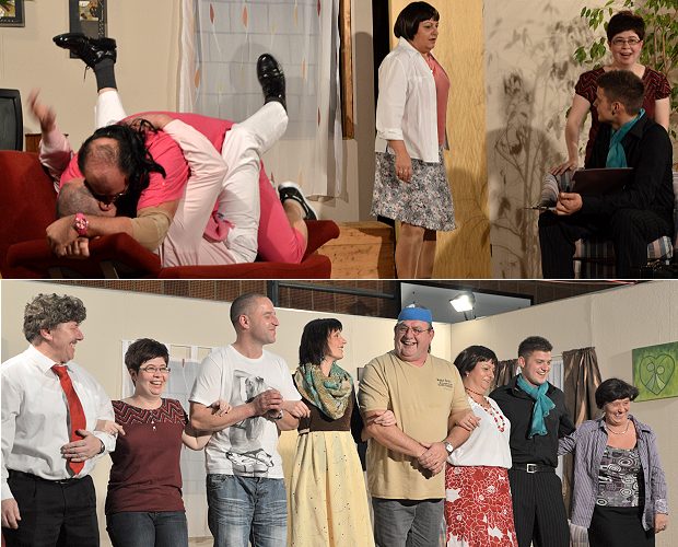Ausverkaufte Vorstellungen und viel Applaus (Fotos: Barbara Gusz)(bg) Am vergangenen Samstag- und Sonntagabend spielte die Theater AG den Dreiakter "Zwei Narren ohne Käfig" von Wilfried Reinehr. Die Sporthalle in Unter-Sensbach war an beiden Tagen ausverkauft.