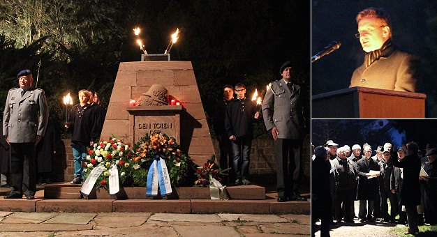 Frieden ist nicht Schicksal sondern Auftrag (Fotos: Hubert Richter)(hr) Die zentrale Gedenkveranstaltung zum heutigen Volkstrauertag in Eberbach fand gegen Abend wieder auf dem Ehrenfriedhof statt.