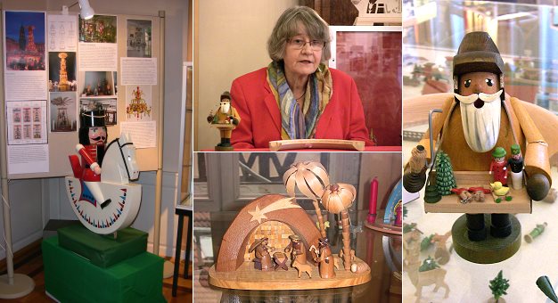Im Museum der Stadt Eberbach wurde am Freitagnachmittag eine Sonderausstellung eröffnet, bei der unter anderem traditionelles Holzspielzeug, Schwibbögen, Pyramiden und Räuchermännchen gezeigt werden. Leihgeber dieser Exponate sind Thomas und Bärbel Kirche aus Seiffen. Thomas Kirche ist ein Nachkomme des Firmeninhabers Max Hetze und zeigt die Produkte seiner Vorfahren in einem Privatmuseum. Dass Eberbach jetzt diese Ausstellung, die im Jahr 2003 in Japan zu sehen war, im ehemaligen Rathaus zeigen kann, ist der Verdienst von Bärbel und Volker Niklas. Sie kennen das Ehepaar Kirche, holten die komplette Ausstellung aus Seiffen und bauten sie, versehen mit interessanten Details zu den einzelnen Figuren, im Museum übersichtlich auf.