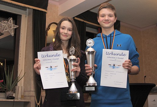 Ronja und Roman Groß sind Pokalsieger (Foto: privat)(bro) (wh) Ronja und Roman Groß sind die diesjährigen Pokalsieger der Schwimmabteilung des TV 1846 Eberbachs. Bei der diesjährigen Vereins- und Schwimmdreikampfmeisterschaften im Eberbacher Hallenbad erzielten die beiden jungen Schwimmer jeweils die schnellste Gesamtzeit. Diese sehr gute Leistung würdigten die beiden Abteilungsleiter Andreas und Julian Kohler im Rahmen der Siegerehrung am vergangenen Montag mit jeweils einem Wanderpokal.