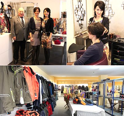 Neue Angebote in der Altstadt und in der Hohenstaufenstraße - Töpferei in Neckarwimmersbach Oben v.l. Stadtrat Dieter Jeitner, Marina Milos-Paradzik und Monika Milos im neuen Friseurgeschäft mit Accessoires. Unten das Outletgeschäft in der Hohenstaufenstraße. (Fotos: Hubert Richter)(hr) Mehrere Geschäftsneueröffnungen wurden in den vergangenen Wochen in Eberbach gefeiert.
