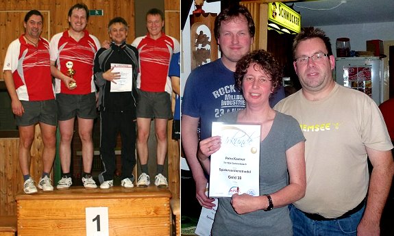 Rückblick auf ein erfolgreiches Jahr 2013 Links die Herrenmannschaft nach dem Sieg im Kreispokal. Rechts Ralf Dinkeldein und Petra Kastner bei der Ehrung durch Kreissportwart Frank Setzer (v.l.). (Fotos: privat)(hr) (abe) Die Tischtennis-Abteilung des TV 1924 Gammelsbach e.V. blickte bei ihrer Jahresabschlussfeier auf ein sehr erfolgreiches Jahr 2013 zurück. Als krönenden Abschluss errang erstmals die erste Herrenmannschaft am dritten Advent den Kreispokalsieg der Kreisliga in der Sporthalle in Beerfelden.