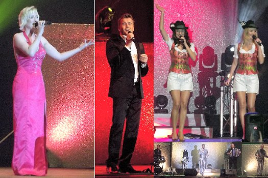 Hansy Vogt gastierte in der Stadthalle Liane (li.), Reiner Kirsten (Mitte), Sigrid und Marina (r. o.). Die Feldberger mit Hansy Vogt (r. u.). (Fotos: Anke Gazzini)(aga) Am Donnerstag, 9. Januar, gastierte Hansy Vogt, der mit dem Programm "Diamanten aus Schlager und Volksmusik“ auf Deutschlandtournee ist, in der gut besuchten Eberbacher Stadthalle.