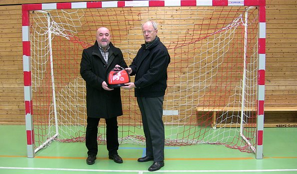 Über die Spende konnte sich heute Herbert Hinterschitt, Vorsitzender der Bürgerstiftung Eberbach e.V., freuen. Der Vorsitzende des Vereins SpatzenNest e.V., Erich Neuner, nahm die Spendenaufrufe in der Presse zum Anlass und übergab am Nachmittag ein Gerät, das für die Mehrzweckhalle in der Brückenstraße bestimmt ist. Neuner war selbst Schüler an der Dr.-Weiß-Schule und sah hier den Bedarf für das Gerät, das im Notfall Leben retten kann. In der Sporthalle finden nicht nur regelmäßig Sportstunden der Grund- und Förderschulen statt, sondern auch Trainingsstunden von Vereinen und Veranstaltungen. Das Gerät "erzählt" selbst, was im Notfall unternommen werden muss. Das erfuhren heute auch einige Mitarbeiterinnen und Mitarbeiter der Dr.-Weiß-Grund- und Förderschule sowie der Randzeitbetreuung durch Hans-Adam Wellenreuther vom DRK bei der ersten Schulung in der Sporthalle.