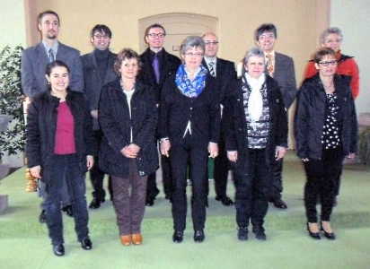 Goldene Ehrennadel für langjährige Kirchenälteste Der neue Kirchengemeinderat. (Foto: privat)(bro) (abl) Im Gottesdienst am 19. Januar wurden in Schönbrunn die neu gewählten Kirchenältesten in ihr Amt eingeführt.