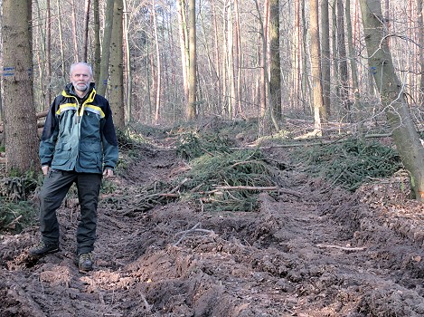 So verwandeln sich aufgrund der aufgeweichten Böden die Rückegassen durch den Einsatz von schweren Maschinen in regelrechte Schlammlöcher. Dabei wird bereits jetzt schon auf einen Teil der Holzerntehiebe verzichtet - sehr zum Leidwesen der Holzrücker und der Sägewerke, denen das Holz fehlt. Wäre der Boden durchgefroren, wie es normalerweise im Winter der Fall ist, würde der Wald viel weniger in Mitleidenschaft gezogen. Einschränken müssen aktuell auch die Spaziergänger, Wanderer und Radfahrer im Wald hinnehmen, denn die Erholungswege erscheinen momentan teilweise unbegehbar. Die Wege können erst wie der hergerichtet werden, wenn die Hölzer verkauft und mit Hilfe von Lastkraftwagen aus dem Wald abgefahren wurden.