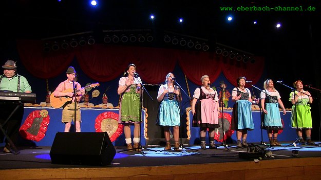 Im Finale stimmte Jürgen Huber dann wieder des Faschingshit "Viva Colonia" mit örtlich angepasstem Text "Feiern in Eberbach" an. Durch das Programm führte wieder Sitzungspräsident Ralph Brenneis mit Witzen und närrischen Sprüchen. Das Bühnenbild ist in diesem Jahr einem Zirkus nachempfunden. Musikalisch begleitet wurde der Abend durch die Feuerwehrkapelle Waldkatzenbach und, zum Auftakt, den Fanfarenzug der Stadt Eberbach.