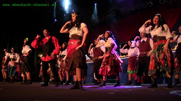 Im Finale stimmte Jürgen Huber dann wieder des Faschingshit "Viva Colonia" mit örtlich angepasstem Text "Feiern in Eberbach" an. Durch das Programm führte wieder Sitzungspräsident Ralph Brenneis mit Witzen und närrischen Sprüchen. Das Bühnenbild ist in diesem Jahr einem Zirkus nachempfunden. Musikalisch begleitet wurde der Abend durch die Feuerwehrkapelle Waldkatzenbach und, zum Auftakt, den Fanfarenzug der Stadt Eberbach.