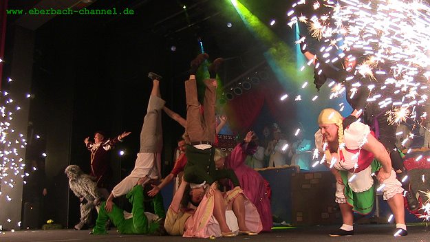 Im Finale stimmte Jürgen Huber dann wieder des Faschingshit "Viva Colonia" mit örtlich angepasstem Text "Feiern in Eberbach" an. Durch das Programm führte wieder Sitzungspräsident Ralph Brenneis mit Witzen und närrischen Sprüchen. Das Bühnenbild ist in diesem Jahr einem Zirkus nachempfunden. Musikalisch begleitet wurde der Abend durch die Feuerwehrkapelle Waldkatzenbach und, zum Auftakt, den Fanfarenzug der Stadt Eberbach.