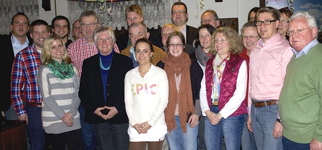 Fast alle amtierenden Gemeinderatsmitglieder treten wieder an  V.l. Alexander Silbereis, Florian Fink, Nadine Höhn, Jan-Peter Röderer, Peter Huck (halb verdeckt), Rolf Schieck, Christa Wernz, Kevin Bohn, Hans Veith, Yvette Dörflinger, Dieter Jeitner (halb verdeckt), Dr. Urte Rietdorf, Jens Müller, Heike Feuerstein, Karlheinz Hauck,
