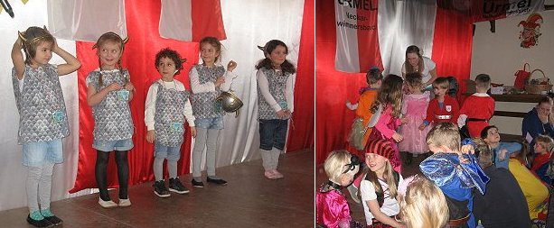 Im Anschluss führten Marilena Messel und Svenja Steck als Moderatoren und Spielleiter gekonnt durch den kurzweiligen Nachmittag. Bei der Reise nach Jerusalem, den Montagsmalern, Luftballonspielen, und Mohrenkopf essen waren die kleinen und großen Kinder mit Begeisterung dabei. Alle waren toll verkleidet als Feuerwehrmann, Polizist, Indianerin und Prinzessin, Clown und Pirat oder auch als Dino, Wikinger, Zigeuner, Ritter, Spiderman und Superman.