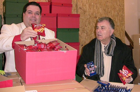 Süßigkeiten für Eberbacher Gaudiwurm sind gerichtet KGK-Präsident Udo Geilsdörfer und "Gutselminister" Helmut Deschner (v.l.) sind für den Umzug gerüstet. (Foto: Claudia Richter)(cr) Die närrische fünfte Jahreszeit geht in wenigen Tagen zu Ende. Zum Abschluss der Kampagne lädt die Karnevalgesellschaft Kuckuck (KGK) am Dienstagnachmittag zum großen Fastnachtsumzug ein. Bonbons und andere Wurfartikel liegen inzwischen im Vereinsheim bereit.