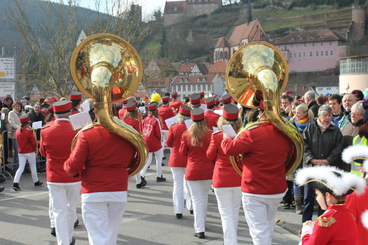 Unter der Leitung der Carnevalgesellschaft "Hirschhorner Ritter" zogen rund 90 Gruppen von der Ersheimer Straße über die Schleusenbrücke und durch die Altstadt über den Freien Platz in die Neckarsteinacher Straße.