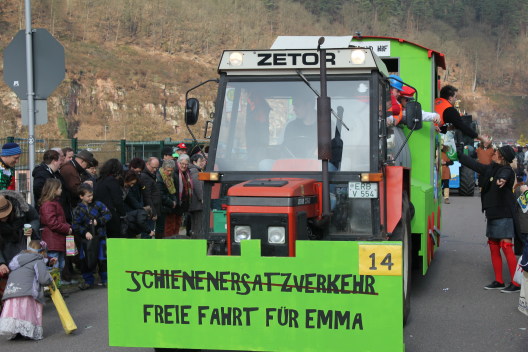 Mit in teilweise wochen- und monatelanger Arbeit gestalteten Motivwagen und Kostümen präsentierten sich zahlreiche Fastnachts-, Sport- und Jugendvereine, sowie kirchliche Gruppen den zahlreichen Zuschauern entlang des Zugweges.