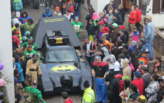 Unter der Leitung der Carnevalgesellschaft "Hirschhorner Ritter" zogen rund 90 Gruppen von der Ersheimer Straße über die Schleusenbrücke und durch die Altstadt über den Freien Platz in die Neckarsteinacher Straße.