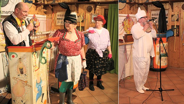 In der bis auf den letzten Platz belegten Hütte ging es am Samstag hoch her. Der erste Vorsitzende Gerhard Laritz begrüßte die Gäste und übergab anschließend das Mikrofon an seinen Vize Karlheinz Dir, der durch das bunte Programm führte. Büttenreden und Klamaukauftritte der Vereinsmitglieder unterhielten die zahlreichen Besucher bestens. Diese dankten es den Akteuren mit ihrem Applaus.