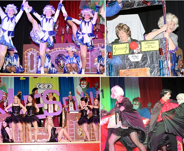 Den Opener lieferten traditionell Fabienne Hemberger und Michéle Johe ab, die das Publikum mit einer Sprachmusiknummer anheizten, ehe der von Sitzungspräsident Robin Hemberger angeführte Elferrat durch den Saal schritt und die Plätze auf dem Podium einnahm. Stilvoll und tiefenentspannt marschierte im Anschluss daran das Jubiläumsprinzenpaar Michaela und Marc Beysel durch die Reihen und bestieg nach ein paar eröffnenden Worten den wohlverdienten Thron. Gemeinsam mit dem 1. Vorsitzenden Karl-Heinz Hemberger durften sie Dennis und Robin Hemberger dann für langjährige Verdienste um die CGB die Ehrenmütze verleihen. Zu Ehren des Prinzenpaares traten anschließend die beiden Funkenmariechen Sophia Büxler und Verena Schäfer auf das närrische Parkett und boten einmal wieder einen temperamentvollen Tanz der Kategorie „Champions League“. Einstudiert mit den beiden Mädels hatten das die beiden Trainerinnen Kathrin Adolph und Franca Rüting. Den Auftakt in Sachen Büttenreden machte kurz darauf der Oberboss der CGB, Karl-Heinz Hemberger. Als viel gereister Topmanager absolvierte er ein kurzes Intermezzo in der Stadt am Berge und hielt so einigen den Spiegel vor. Blau-weiß leuchtete es im nächsten Programmpunkt, als die Jugendgarde einen an Synchronität kaum zu überbietenden Tanz vorführte und bestätigte, warum sie auf Gardeturnieren immer in der Spitzengruppe mittanzt. Verantwortlich für diese Truppe waren die beiden Trainerinnen Silke Berger und Nadja Lautenschläger. Dass Mickie Krause und der Wendler nur Schnarchtassen sind, bewies danach Stimmungssänger Wilfried Schlettenkamp a.k.a. Stefan Münkel, der drei pointierte und spitzfindige Songs zum Besten gab und sich unter anderem diebisch darüber freute, dass seine ehemalige Gespielin seine Auflaufform bei ihm vergessen hatte. Nicht blau-weiß wie bei der Jugendgarde, sondern weinrot sind die wunderschönen Kostüme der Großen Garde, die den nächsten Programmpunkt darstellte. Das Aushängeschild der CGB, trainiert von Ulrike Burkard-Blome, bewies mal wieder tänzerisch extrem hohes Niveau und zeigte einen wunderbaren Gardetanz zu mitreißenden Melodien. Ein etwas aus dem Leim gegangener Kater (Robin Hemberger) und ein schmaler Papagei (Markus Müller) betraten im Anschluss an die Garde das Parkett und stellten in ihrem Vortrag u.a. fest, dass eine Raumschiffbesetzung von zwei Schweinen und einem Hetzbacher gut funktionieren kann. Professor Doktor Spinner (Dennis Hemberger) und sein grenzdebiler Patient (Felix Sasse) waren das nächste Paar auf der närrischen Rostra. Wie schon in 2013 konnte sich der Patient nur in Liedform ausdrücken und gab so ein paar Episoden aus seinem Leben zum Besten. Bevor es in die Halbzeit ging, enterten die Galgenvögel - in diesem Jahr verstärkt um drei Jungvögel - die Bühne und trällerten unter der Leitung des Dirigenten Martin Steffan und des Pianisten Lothar Helm wieder wunderbare Lieder. Beschlossen wurde die erste Hälfte schließlich mit dem allgegenwärtigen „Rock mi“ , ehe nach der kurzen Unterbrechung die „Young Generation“ zu einer Reise durch die Zeit aufbrach. Angefangen bei der Gründung der CGB 1948 trafen sie auf der Suche nach dem Hausmeister Herbert in jedem Jahrzehnt populäre Künstler wie die Beatles, Abba oder Peter Kraus und Dr.Alban und enterten zum Abschluss den verdienten Applaus. Die schönsten Clowns des Abends (Heike und Michéle Johe) forderten in einer witzigen Bütt unter anderem den ersten Einsatz der Jung-Elferräte Thomas Hupp und Lothar Volk, die ihre Sache jedoch glänzend erledigten. Das Chicago der 20er Jahre war im Anschluss daran das Ziel der Mädels von den Wild Angels, die zum Thema „Burlesque“ eine Performance boten, bei der nicht nur die männlichen Zuschauer ins Schwitzen kamen. Verantwortlich dafür war das Trainerinnentriumvirat Tanja Ebert-Sebening, Marina Ebert und Tabea Hartmann. Dass man einen bunten Abend durchaus auch in 15 Minuten absolvieren kann, zeigte danach die CG Corpulento um Prinz Hembibi I. (Karl-Heinz Hemberger), den Sitzungspräsidenten Lothar Helm, Stimmungssänger Ernesto Black (Gerhard Hartmann) die Büttenredner Hanspeter Egger und Raimund Keysser und das explosive Tanzduo Ralf Johann und Stefanie Helm. Abermals tänzerisch wurde es dann mit den Blutdruckmessern, die den Zuschauern bei ihrem Tanz der Vampire das Blut in den Adern gefrieren ließen. In akribischen Übungsstunden hatten Regina Georg und Diana Weil-ZImmmermann diesen Tanz mit der Mannschaft einstudiert. Die Halle zum Beben brachte im Anschluss daran Gaststar Udo Reubold von der CC Rot Weiss Steinbach. Was er mit Stimme, Mimik, Gestik und einem brillanten Vortrag auf die Bühne zauberte, war schlichtweg sensationell, und die CGB ist stolz und froh, ein solches Bühnen-Ass bei sich begrüßen zu dürfen. Die stehenden Ovationen hatte sich der Büttenredner mehr als verdient. Den letzten Tanz des Abends zeigten schließlich die Dream Girls, die als Super Marios die Prinzessin aus Bowsers Händen befreiten und denen es mal wieder gelang, tänzerisch tolle Elemente mit der notwendigen Prise Humor zu mischen. Zum großen Finale inklusive dem obligatorischen „Dachkannel“ waren zum Abschluss dann noch einmal die Galgenvögel am Start und beschlossen die bunten Abende. Alle Aktiven der CGB können sicherlich stolz auf das Geleistete sein und haben es geschafft, das närrische Auditorium einmal wieder für ein paar Stunden aus dem Alltag zu entführen.