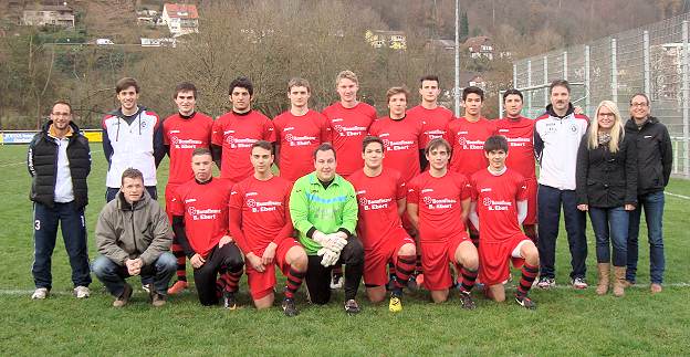 Erste Mannschaft im neuen Outfit (Foto: privat)(bro) (rb) Grund zur Freude hatte die erste Mannschaft des SV 1924 Eberbach. Das Anlagen- und Finanzberatungsbüro Bonnfinanz Ebert hat ihr nämlich neue Trikots gespendet. Die Mannschaft, die beiden Trainer, Heiner Beisel und Patrick Schäfer, sowie der erste Vorsitzende, Ralf Bettinghausen, bedankten sich bei Tanja und Marina Ebert (siehe Foto).