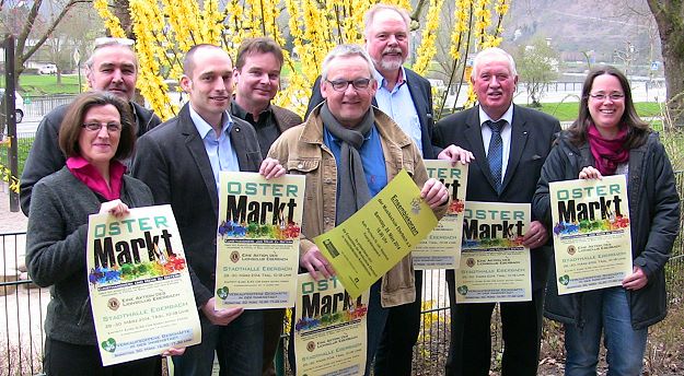März klingt mit Ostermarkt und verkaufsoffenem Sonntag aus EWG, Lionsclub und Stadtverwaltung stellten das Programm zum Eventwochenende 29./30. März vor. (Foto: Claudia Richter)(cr) Am letzten Märzwochenende findet in Eberbach der Ostermarkt des Lions-Clubs statt. Sonntags können die Gäste außerdem in den EWG-Geschäften einkaufen und bei der Wahl der Bärlauchhoheit 2014 mit dabei sein.