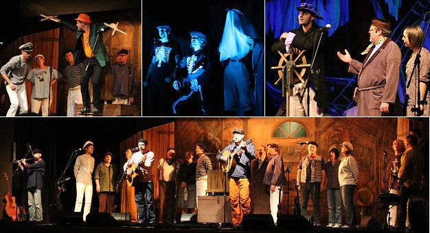 Mit dem Geisterschiff auf Schatzsuche (Fotos: Maren Richter)(hr) Auf eine gespenstische Reise nahm der Odenwälder Shantychor gestern Abend sein Publikum in der Eberbacher Stadthalle mit. "Der Geist, der aus der Kelter kam" heißt das aktuelle Programm, ein "Grusical" aus Seemannsgarn, Odenwälder Lokalkolorit und viel Musik.