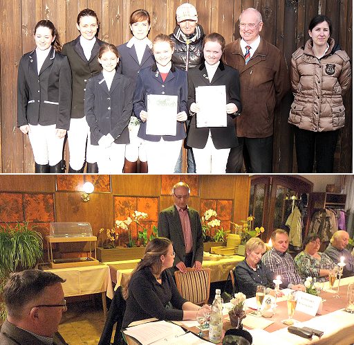 RFVO Beerfelden - Erfolgreicher Frühjahrskurs und Jahreshauptversammlung Oben: Die neuen Abzeichenträgerinnen mit Ausbilderin Daniela Hintenlang (Mitte). Unten: Bürgermeister Gottfried Görig lobte den RFVO als Aushängeschild der Stadt Beerfelden. (Fotos: privat)(bro) (rau) Im März fand der diesjährige Frühjahrsreitkurs des Reit- und Fahrvereins Oberzent zum Erwerb diverser Abzeichen statt. Alle Bewerber bestanden die Prüfungen. Auf der Jahreshauptversammlung am Freitag, 4. April, im Gammelsbacher Gasthaus „Kühler Krug“ wurden im Beisein von Bürgermeister Gottfried Görig die Urkunden übergeben.