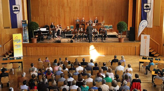 Gleich vier Formationen gaben sich auf der Bühne im großen Saal ein Stelldichein. Vor rund 100 Zuhörern spielten die Bigband der Musikschule Eberbach, die Bigband der Musik- und Singschule Heidelberg, die Bigband der Musikschule Südliche Bergstraße aus Wiesloch (unser Bild) und die Bigband der Musikschule Posznan aus Polen. Letztere besuchte gerade ihre Partnermusikschule in Heidelberg und kam mit zum Konzert in Eberbach.