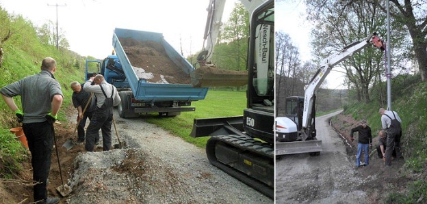 Damit die Gäste am Abend nicht im Dunkeln stehen, haben sich freiwillige Helfer aus dem Vorbereitungsteam zusammengefunden und von der Stadt zur Verfügung gestellte, drei gebrauchte Straßenlampen in Eigenhilfe aufgestellt. Die Baggerarbeiten wurden von der ortsansässigen Firma Wesch-Bau ausgeführt.