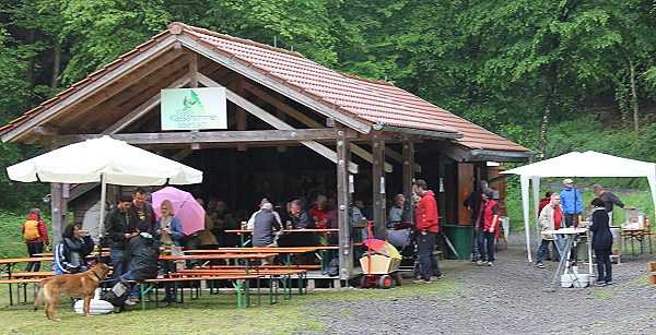 Obwohl heute April- statt Maiwetter vorherrschte, konnten die Mitglieder der Eberbacher SPD zahlreiche Maiwanderer und Ausflügler mit Gegrilltem, Getränken aller Art, Kaffee und Kuchen verwöhnen. Das verlockende Angebot an der idyllisch gelegenen Waldhütte nutzten auch wieder einige Wanderer, die auf dem Neckarsteig unterwegs waren, als willkommenen Zwischenstopp.