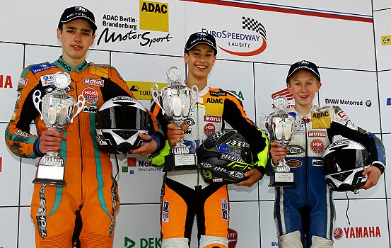 Drei Runden vor Schluss hatte der Führende, Mark Zellhöfer, bereits eine Lücke von zwei Sekunden auf die Verfolger aufgefahren. Tulovic schaffte es dennoch, aufzurücken und in der letzten Runde die Lücke auf Zellhöfer zu schließen. Was folgte war ein Moto GP reifes Finale der beiden Nachwuchs-Piloten - in der vorletzten Kurve holte sich Lukas schließlich die Führung zurück und siegte.