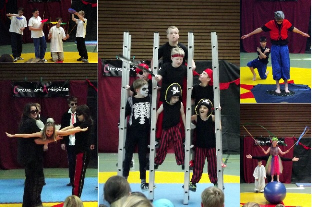 Eine ganze Woche lang hatten die Schüler der Förderschule unter Anleitung der "artArtistica-Schule" - einer mobilen Schule für Kunst, Kultur, Bewegung, Spiel, Artistik und Zirkus - im Rahmen der Projektwoche hart trainiert. In der Gemeinschaft erarbeiteten sich die jungen Artisten ein kunterbuntes, fröhliches Programm. So durften Fakire bestaunt werden, die über Scherben liefen und auf Nagelbetten lagen. Balanceakte auf Ball, Rolle und Drahtseil, Jonglage mit Tellern, Tüchern, Ringen und Diabolo gab es ebenso zu bewundern wie rasante Seilspringaktionen. Eine Piratengruppe bot sogar Leiterakrobatik dar.