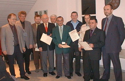 Premiere im Sensbachtaler Gemeindehaus Bürgermeister Manfred Heiss (l.), Kreisbeigeordneter Friedel Sepp (2.v.l.) und der Vorsitzende der Gemeindevertretung Erich Kuhlmann (r.) mit den Geehrten. (Foto:C.Richter)(hr) Gestern abend begrüßte Bürgermeister Manfred Heiss im vollbesetzten Gemeindehaus Bürgerinnen und Bürger aus Sensbachtal, die Gemeindeältesten Adam Scheuermann und Wilhelm Gaul, sowie zahlreiche Ehrengäste aus umliegenden Nachbargemeinden. Bei einem Rückblick ins Jahr 2001 erinnerte er nicht nur daran, daß das 3. Jahrtausend tatsächlich am 1.Januar 2001 angefangen hatte, sondern dass in Sensbachtal auch viele Feste gefeiert wurden. Heiss berichtete von Kommunalwahlen und Bürgermeister-Direktwahlen, Aktionen der verschiedenen Vereine und von einem Traum, der am 21. Dezember wahr wurde: weiße Weihnachten im Odenwald. Sein besonderer Dank ging an viele Bürger und Landwirte, die mit Maschinen die Schneemassen wegräumten. Er erinnerte auch an die Deutsche Mark, die mit dem Glockenschlag zum Jahreswechsel vom Euro abgelöst wurde.