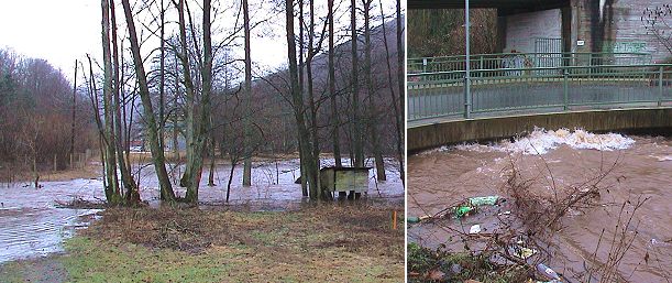 Neckarlauer weiterhin gesperrt (Fotos:Richter)(hr) Obwohl der Neckar derzeit brav in seinem Bett dahinfließt, bleibt der Parkplatz am Lauer weiterhin gesperrt. Aufgrund der Wetterlage schließt die Stadtverwaltung nämlich ein erneutes Ansteigen des Pegels nicht aus. Auf ein bedenkliches Niveau angeschwollen ist heute jedenfalls die Itter. Grund ist der starke Regen in Verbindung mit der rasch fortschreitenden Schneeschmelze im südlichen Odenwald. Unsere Bilder entstanden an der Meilswiese oberhalb der Firma Dilo (rechts) und an der Brücke zur Straße "An der Itter".