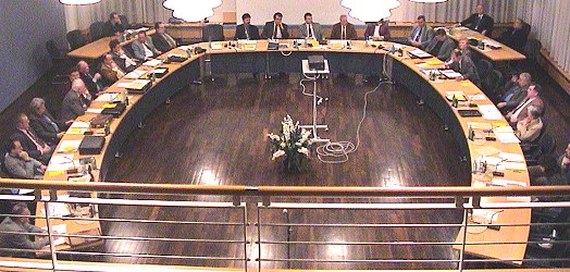 Stadt macht wieder Schulden - Haushalt einstimmig verabschiedet Das Gemeinderats-Plenum befasste sich heute abschließend mit dem städtischen Haushaltsplan. (Foto:Richter)(hr) Mit den Stimmen aller Mitglieder verabschiedete der Eberbacher Gemeinderat heute abend sowohl den Haushaltsplan der Stadt für 2002, als auch den Wirtschaftsplan für die Stadtwerke und die Betriebspläne für den Stadtwald.