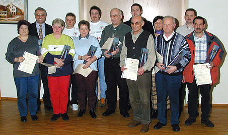 Für 25-maliges Blutspenden gab es die Blutspender-Ehrennadel in Gold mit goldenem Lorbeerkranz und eingravierter Spendenzahl. Sie wurde vergeben an: Sieglinde Fink, Beate Frisch, Ingrid Holzner, Franz Runkel, Bettina Schäfer und Artur Steck.