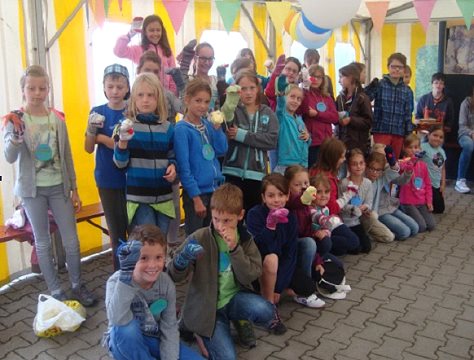 Dass Verschiedenheit kein Grund ist, eine Grenze zwischen sich und anderen zu ziehen, erfuhren die Kinder bei den Geschichten, die es morgens im Kinderprogramm zu hören gab. Und sie erlebten es selbst, zum Beispiel beim Basteln der Sockenpuppen, die erst durch ihre Verschiedenheit einen großen Reichtum an Kreativität und Individualität boten. Aber auch beim „Grenzenlos-Stationenspiel" wo es an verschiedenen Stationen um ein positives Miteinander ging, man aber auch seine eigenen Grenzen austesten konnte, z. B. die Geschmacksgrenzen, mit eher unbekannten Nahrungsmitteln. Im Blick auf die zum neuen Schuljahr beginnende Kooperationsklasse an der Winterhauchschule wurde auch angesprochen, wie gut es für beide Seiten ist, wenn Behinderungen keine Grenzen zwischen Menschen aufbauen.