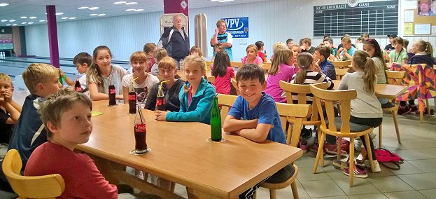 Nach einer kurzen Einführung, wie man sich auf der Kegelbahn verhält und welche Kugeln zu nehmen sind, durften die Kinder selbst die Kugeln in die Hand nehmen. Mit viel Elan und großem Interesse kegelten sie. Aller Anfang ist schwer, aber nach jeder Kugel wurde es besser. Es machte allen einen sehr großen Spaß, zumal auch noch Preise, wie z. B. für den ersten Neuner und den ersten Kranz, ausgesucht werden durften. Für gewonnene Spiele gab es auch diverse Kleinigkeiten, es kam also kein Kind zu kurz.