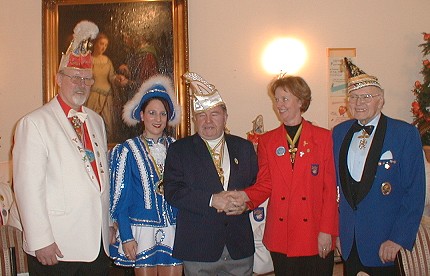 Bei der KG Kuckuck gab es hohe Auszeichnungen V.l. KG-Kuckuck-Präsident Dieter Müller, Katja Reinig, Anton Veith, Gudrun Müller und Dr.Werner Pfützer. (Foto:C.Richter)(hr) Grund zum Feiern gibt es bei der KG Kuckuck: Es wurden langjährige Aktive geehrt.