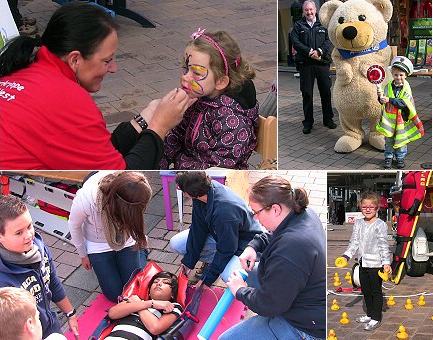 Anschließend ist Kurzweil für Groß und Klein angesagt. Es gibt u.a. Fahrzeuge zum Anfassen und reinsetzen (Polizeiwagen, Rettungswagen, etc.) und diverse Spiele wie ein Zeltaufbauwettbewerb mit den Pfadfindern „Silberreiher“, Dosenwerfen mit dem Roten Kreuz, Torwandschießen mit dem SV Eberbach sowie Entenangeln mit der DLRG. Außerdem bietet der Pfadfinderstamm „Goten“ zwei Spielstationen an.