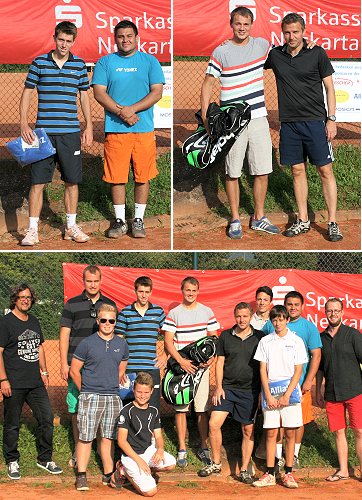 Gelungene Premiere - Dominic Palm geht als Sieger vom Platz Links oben: die Finalisten Hauptfeld: Sieger Dominic Palm und Nicholas Garcia. Rechts oben: die Finalisten Nebenfeld: Ralph Penny und Steffen Karolus. Unten: die Teilnehmer. (Fotos: privat)(bro) (js) Perfektes Spätsommerwetter und viele Zuschauer ließen am vergangenen Wochenende die erste Eberbach Open des TC Blau-Weiß zu einem der Höhepunkte der Tennisfreiluftsaison werden.