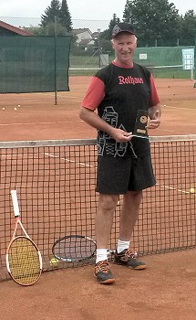 Der für den Eberbacher Tennisclub Blau-Weiß startende Josip Varga, er ist mit den Herren 60 in dieser Saison in die Badenliga aufgestiegen, spielte sich locker bis ins Halbfinale vor. Auch hier stand er nach einem drei Stunden und zwanzig Minuten dauernden Match als Gewinner fest, bevor er im Finale Egon Höfling mit 7:6/6:4 bezwingen konnte und den Siegerpokal in Empfang nehmen durfte.