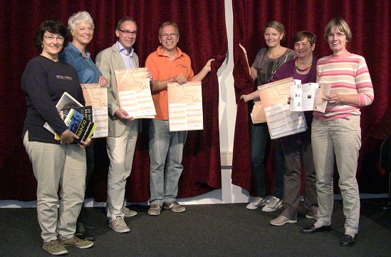 16 Events von September bis November VHS-Leiterin Barbara Coors (2.v.r.) mit Kooperationspartnern der Veranstaltungsreihe: V.l. Luzia Scharf (Stadtbücherei), Petra Ostermaier (Kath.Bildungswerk), Dekan Ekkehard Leytz (Evang. Kirche), Sponsor Frank Knecht, Isabell Friedel (Kulturamt) und Ellen Leytz (Interkulturelle Frauenbegegnung). (Foto: Claudia Richter)(cr) "Grenzen" ist das Thema der diesjährigen Veranstaltungsreihe, die über die Volkshochschule Eberbach-Neckargemünd (VHS) in den nächsten Wochen in Eberbach angeboten wird. VHS-Leiterin Barbara Coors stellte gemeinsam mit den Vertreterinnen und Vertretern verschiedener Eberbacher Institutionen das Programm vor.