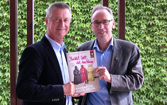 Grenzfragen zwischen Glaube und Politik Armin Muff und Dekan Ekkehard Leytz (v.l.) stellten die Gottesdienstreihe vor. (Foto: Claudia Richter)(cr) Im Rahmen der VHS-Veranstaltungsreihe zum Thema "Grenzen" (wir berichteten) lädt die evangelische Kirchengemeinde zu Gottesdiensten ein, in denen Politiker zu Wort kommen und über aktuelle Themen referieren. Anschließend ist eine Diskussions- und Fragerunde angedacht.