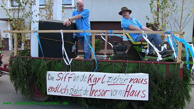 Der Kerweclub hatte 15 Zugnummer zusammengestellt. Begleitet von schmissigen Klängen der Musikkapelle aus Allemühl führten die Kerweborscht mit Schlumpel und Ziegenbock den bunten Umzug an. Mehrere Wagen und Fußgruppen folgten. Manche von ihnen thematisierten Vorfälle und Missgeschicke im Dorfleben. Nach dem Umzug gab es noch Unterhaltung in der Rockenauer Festhalle. Begonnen hatte der Kerwesonntag mit einem Frühschoppen an der Festhalle, der von der Feuerwehr ausgerichtet wurde.