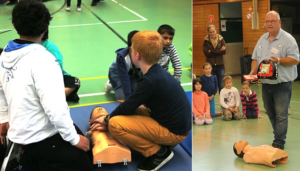 Eberbach ist aufgrund des Engagements der Bürgerstiftung und anderer Spender vorbildlich mit lebensrettenden Defibrillatoren ausgestattet. Rund 30 dieser Geräte sind zurzeit dezentral in der Stadt verteilt und ausgeschildert. Obwohl die Geräte selbsterklärend sind, gibt es noch eine Diskrepanz zwischen der breiten Verfügbarkeit der "Defis" und der Zahl derer, die sie im Ernstfall auch ohne jegliche Berührungsängste anwenden könnten oder würden. Deshalb soll nun schon das richtige Verhalten als Ersthelfer von Kindesbeinen eingeübt werden. Bei der Veranstaltung in der Schule wurden rund 250 Schülerinnen und Schüler ab Klasse 2 darauf vorbereitet, beim Auftreten von lebensgefährlichen Situationen die jeweils notwendigen Maßnahmen zu treffen, und zwar vom Notruf bis hin zu den Techniken der modernen Erste-Hilfe-Möglichkeiten, einschließlich der Reanimation.