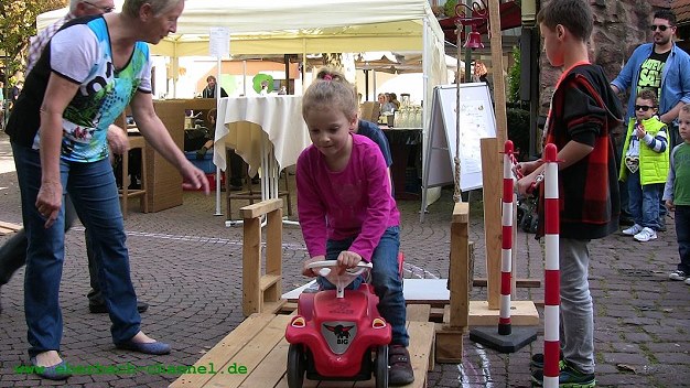 Am Samstagnachmittag standen ab 14 Uhr die Kinder im Vordergrund. Mitglieder der Eberbacher Werbegemeinschaft (EWG) luden zum Spielen auf den Lindenplatz ein. Neben Geschicklichkeits- und Glücksspielen rund um den Apfel war auch in diesem Jahr wieder das Bobbycar-Rennen unter der Rennleitung von Rolf Wieprecht das Hightlight. Alle teilnehmenden Kinder erhielten kleine von der EWG gespendete Präsente sowie - passend zum Anlass - Äpfel.