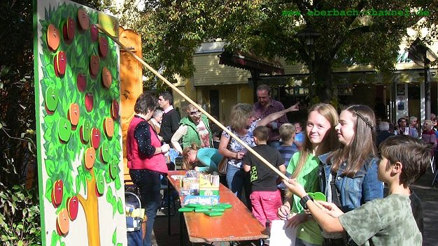 Am Samstagnachmittag standen ab 14 Uhr die Kinder im Vordergrund. Mitglieder der Eberbacher Werbegemeinschaft (EWG) luden zum Spielen auf den Lindenplatz ein. Neben Geschicklichkeits- und Glücksspielen rund um den Apfel war auch in diesem Jahr wieder das Bobbycar-Rennen unter der Rennleitung von Rolf Wieprecht das Hightlight. Alle teilnehmenden Kinder erhielten kleine von der EWG gespendete Präsente sowie - passend zum Anlass - Äpfel.